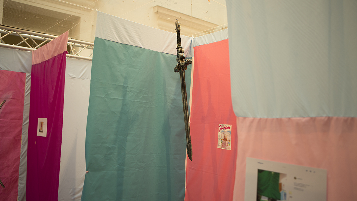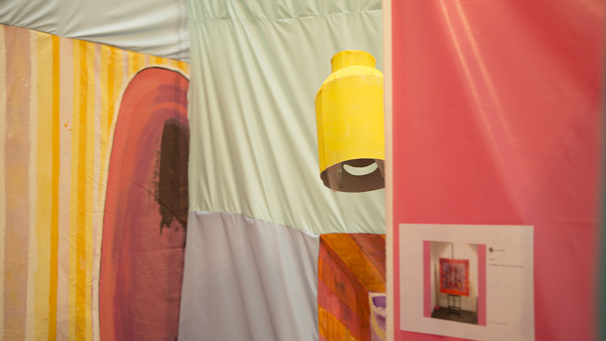 Timelife story, a spatial three-dimensional work in the form of a labyrinth, illustrates Subjects ́s Timeline on Instagram. The labyrinth is a life-size, maze shaped, interactive environment. The Timeline is a plain, legible, with pastel background-theme media. Although it is filled with a content (objects, paintings, photos), the context is very clear. There are two entrances, and one exit. One can walk various paths, create own walking patterns and make up own stories. The Subject is a storyteller. The story doesn’t require to be read chronologically, it is preferred to be narrated in various ways. There is an open-end situation with no time limit.